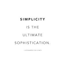Simplicity is the ultimate sophistication. A quote attributed to Da Vinci but more likely the work of playwright Clare Boothe Luce. Simplicity is the ultimate sophistication.