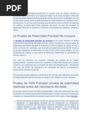 No obstante existen algunas opciones para realizar la. El primero es el de vellosidades coriales que implica una punción entre las semanas 12 y 13 del embarazo. Para obtener más información sobre la tecnología de secuenciación genética consulte nuestro Introducción a los métodos de prueba de ADN y nuestro Prueba de.